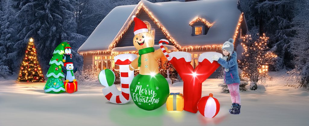 - WATERPROOF, SNOWPROOF, AND FADE-RESISTANT GINGERBREAD DECOR: Our christmas inflatable made from high-quality, tear-resistant polyester and crafted with tighter stitching, it is waterproof, snowproof, and fade-resistant. The vibrant colors and thick materials are ideal for long-term outdoor display