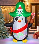 6FT PIRATE PENGUIN CHRISTMAS DECORATIONS OUTDOOR : Add a fun twist to your christmas décor with this 6ft Pirate Penguin Inflatable ! Dressed in a green pirate hat and eyepatch, this adorable penguin brings holiday cheer with a playful pirate theme. Equipped with rotating colorful LED lights, it will stand out in your yard day and night.